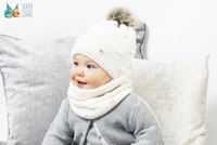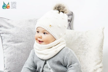 BROEL Noemi czapka na zimę dla dziewczynki z pomponem ecru