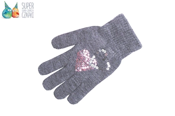 Rękawiczki pięciopalczaste cekiny szare 16cm