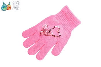 Rękawiczki pięciopalczaste cekiny różowe 16cm