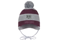 BROEL Flank czapka na zimę wiązana dla chłopca szara-bordo
