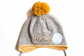 BROEL Fond czapka na zimę wiązana dla chłopca szara-miodowa
