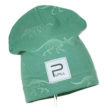 Pupill T-Rex czapka dla chłopca dinozaury odblaskowa zielona