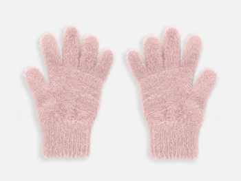 Rękawiczki BUSIA futerkowe pięciopalczaste brudny róż L 19cm