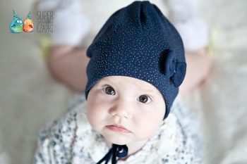 BROEL Blair czapka niemowlęca dla dziewczynki tęczowe kropki kokarda granat