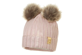 BROEL STELLA czapka na zimę dwa pompony różowa