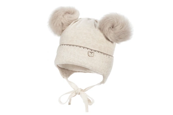 JAMIKS Mali czapka z dwoma pomponami dla dziewczynki królik beżowa