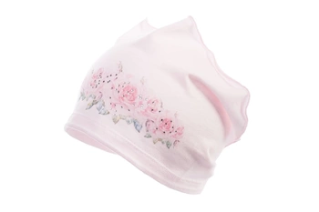 Jamiks AFEJA czapka na wiosnę dla dziewczynki wiskoza kokarda róże ecru