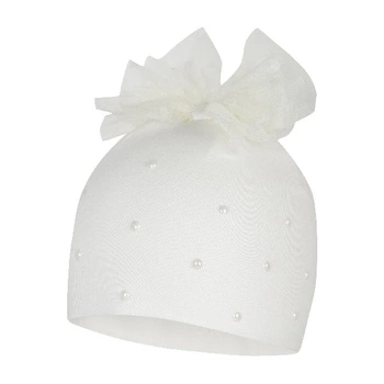 Broel Beatriz czapka z tiulową kokardą wiskoza biała