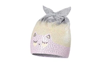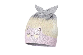 Broel MARIOLA czapka podwójna kotek kokarda szary-róż