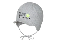 Pupill Ama czapka dla dzieci prążkowana dzianina uszka welur ecru
