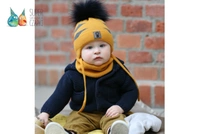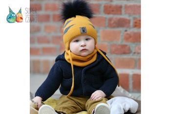 Pupill BIG CAT komplet na zimę dla chłopca z pomponem miodowy