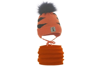 Pupill BIG CAT komplet na zimę dla chłopca z pomponem rudy