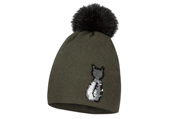 BROEL Camilla czapka dla dziewczynki cekiny kotek khaki