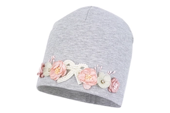 Jamiks AJA czapka dla dziewczynki bambus różowa piwonie