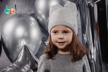 Jamiks Vienna czapka dla dziewczynki wiązana pompon szara isosoft