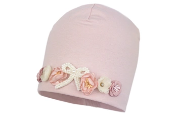 Jamiks AJA czapka dla dziewczynki bambus różowa piwonie
